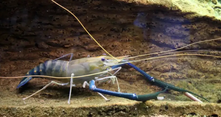 Camarão-gigante pode atingir mais de 30 centímetros, sendo uma das maiores espécies cultivadas no País |  Foto: Reprodução/ Wikimedia Commons