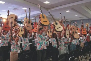 “Temos quatro grupos, o de orquestra de violões, com pelo menos 20 integrantes em cada um, o de orquestras sinfônicas, de bandas de desfile tradicionais e de corais escolares”, explicou Marcos.