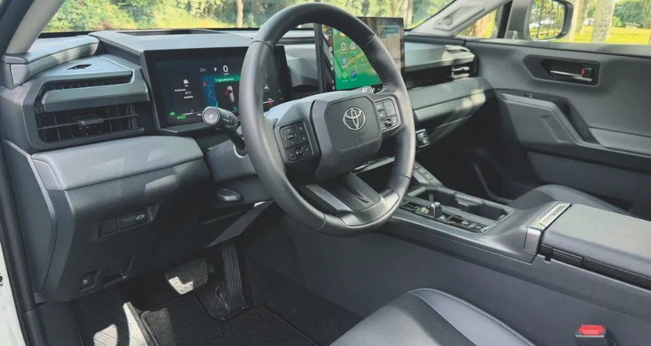 E há um detalhe bem japonês — felizmente. A Toyota manteve botões físicos em áreas importantes. Os comandos do ar-condicionado e do áudio reduzem distrações ao volante. Nem tudo precisa virar tela. O console central também foi bem resolvido, com carregador por indução, entradas USB e espaços práticos para objetos.