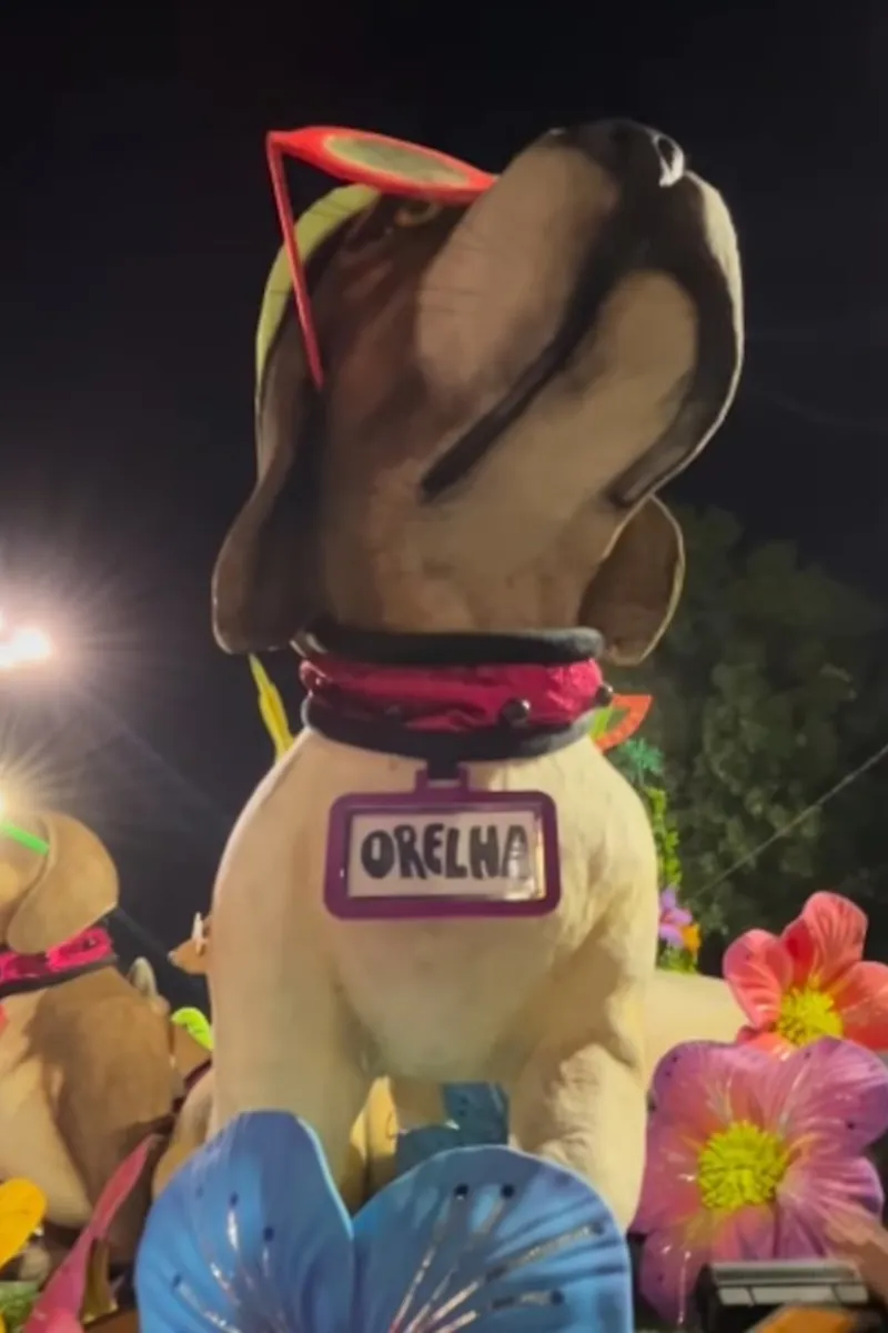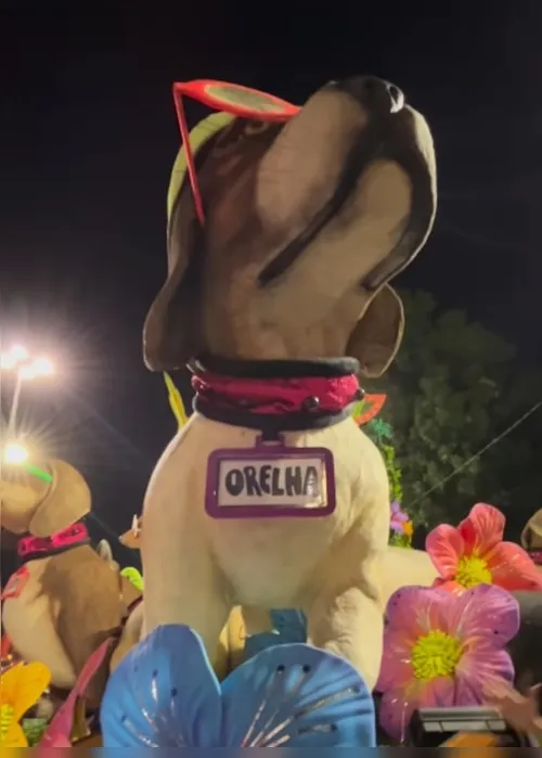 Orelha foi lembrado em um dos tripés que a agremiação levou à avenida. Na alegoria, esculturas de animais, com óculos escuros, usam coleiras com o nome de Orelha.