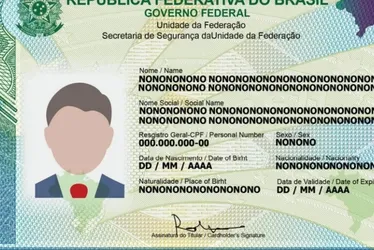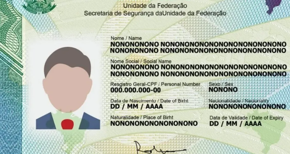 Modelo da Carteira de Identidade Nacional (CIN) do Brasil, que é a nova versão unificada do RG