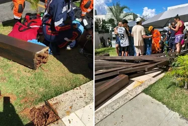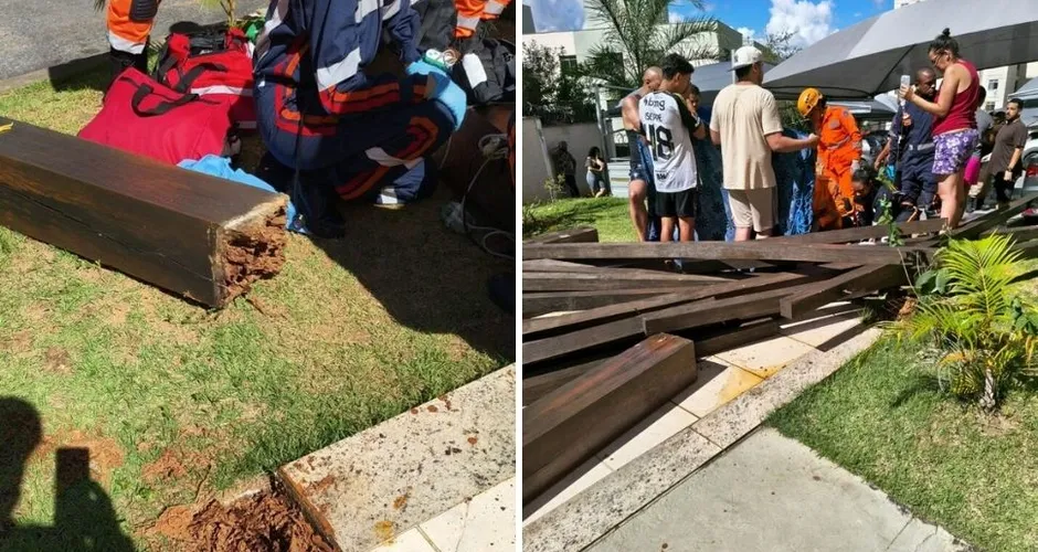 Conforme o Corpo de Bombeiros, a pesada estrutura de madeira atingiu as crianças, sendo as mesmas retiradas sob os escombros. Imagens mostram que um dos pergolados do playground de madeira quebrou na base.