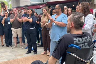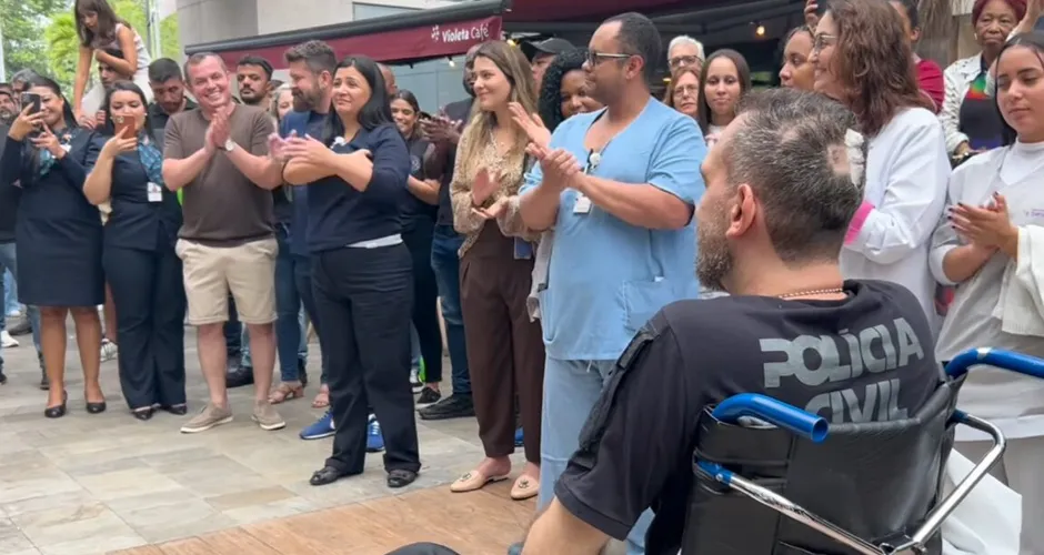 Na saída do Hospital Samaritano, na Barra da Tijuca, na zona sudoeste do Rio, Bernardo foi recebido por colegas da Polícia Civil, amigos, familiares e por parte da equipe médica da unidade.