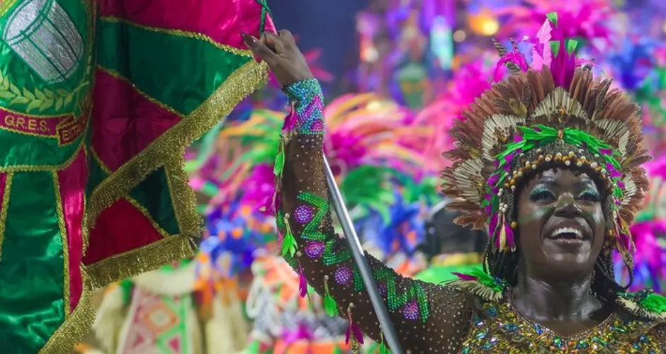Desfile das campeãs do carnaval do Rio: onde a bandeira das escolas é mais do que um adereço
