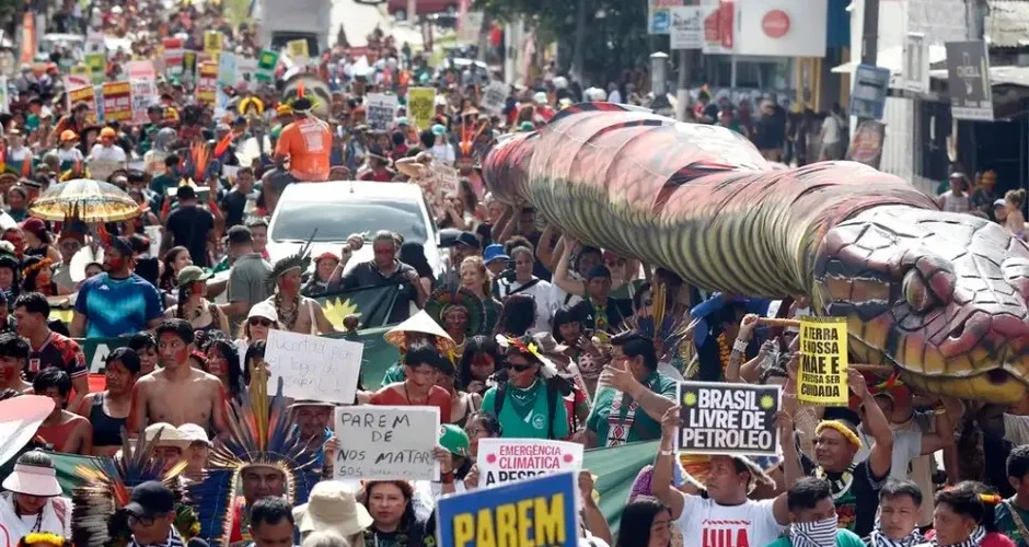 Parem de nos matar. A frase estava em cartazes e foi repetida com frequência por lideranças na Marcha Global dos Povos Indígenas nesta segunda-feira (17), em Belém. No ato, houve solidariedade, em especial, ao assassinato de Vicente Fernandes Vilhalva Kaiowá, de 36 anos, atingido por um tiro na cabeça durante um ataque armado à retomada Pyelito Kue, no município de Iguatemi, Mato Grosso do Sul, neste domingo.