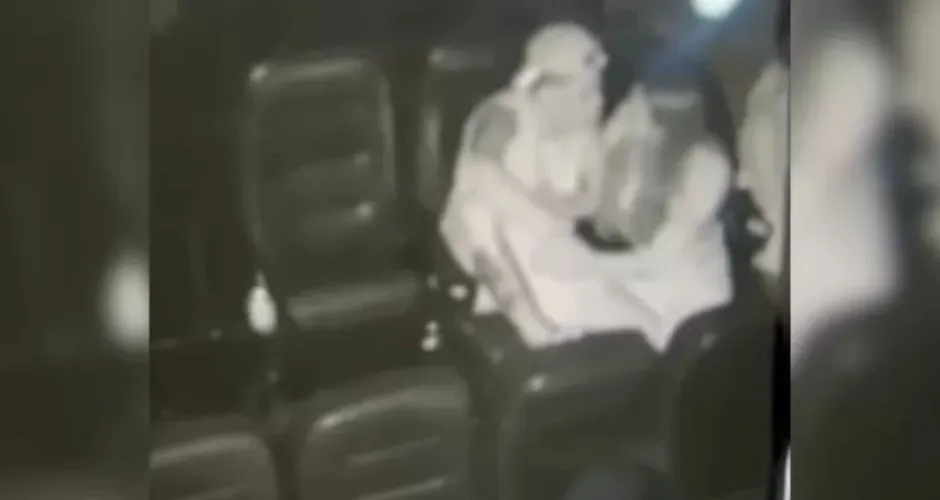 Um homem foi flagrado agredindo a companheira, uma jovem de 19 anos, dentro de uma sala de cinema em Ubá (MG) no último domingo (7).