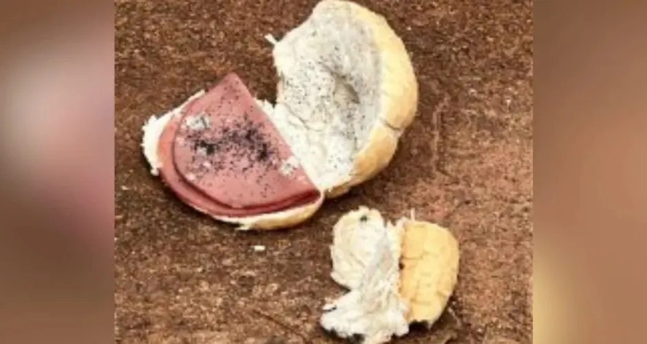 Segundo a polícia, foram encontrados vestígios de um sanduíche contendo uma substância utilizada para o envenenamento. Nas imagens registradas pelos policiais durante a ação, é possível ver o alimento que teria sido usado no crime, um pão francês com fatias do que parece ser mortadela.