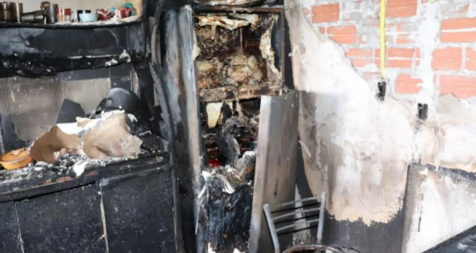 Ele também aponta o “alto grau de formação por ação térmica na parte interna da geladeira e o alto grau de queima dos armários”. Na análise, a perícia concluiu ainda que o material combustível, que deu carga ao incêndio, foram o mobiliário da cozinha e da sala, cômodos que ficaram completamente destruídos.