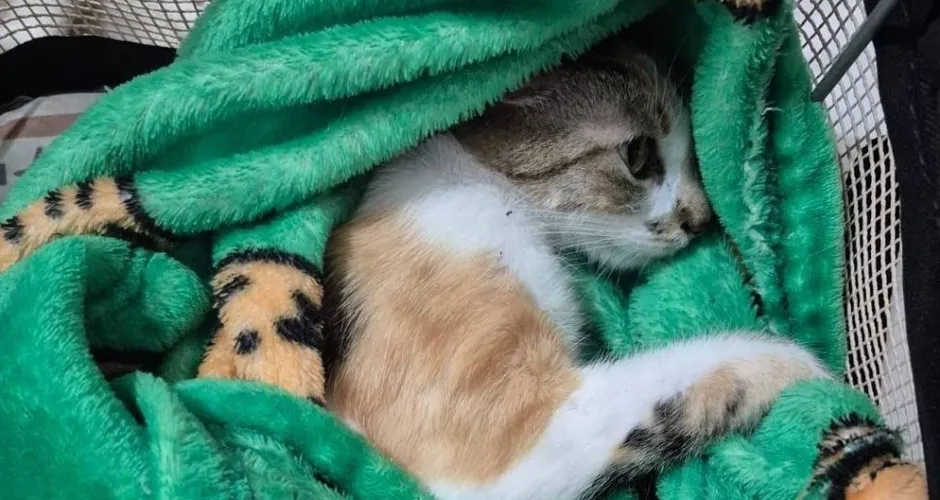 Gata sobreviveu à queda e foi levada em estado grave para atendimento veterinário na ong Força Animal