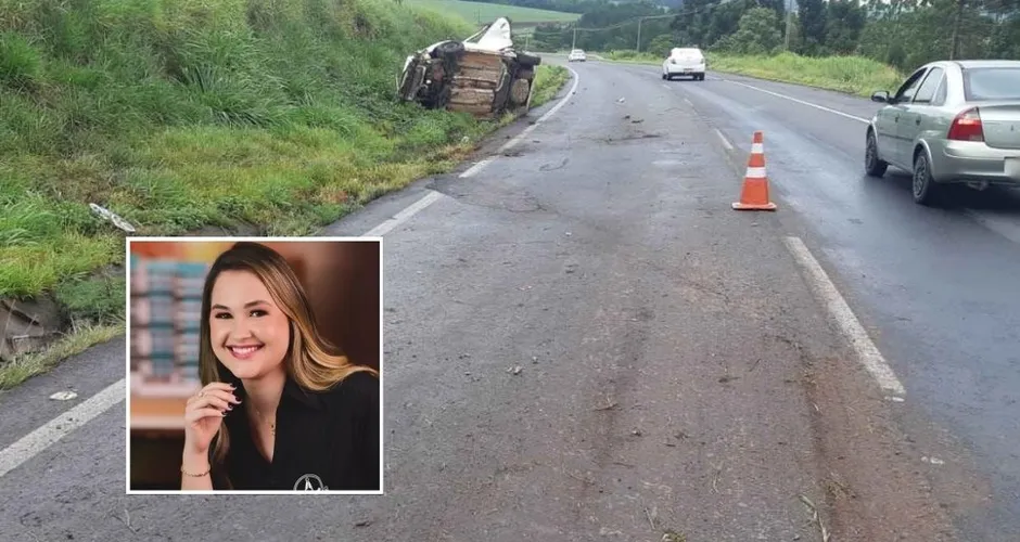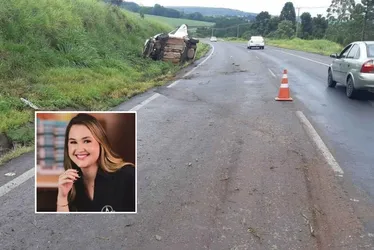 Carro em que a arquiteta Samara Prado Martins e o marido, Thiago Oliveira Martins, estavam capotou no acostamento da rodovia na manhã desta segunda-feira (29). O acidente foi no sentido Curitiba/Ponta Grossa da pista por volta das 8h e o motivo do capotamento não foi informado até o momento pela Polícia Rodoviária Federal.