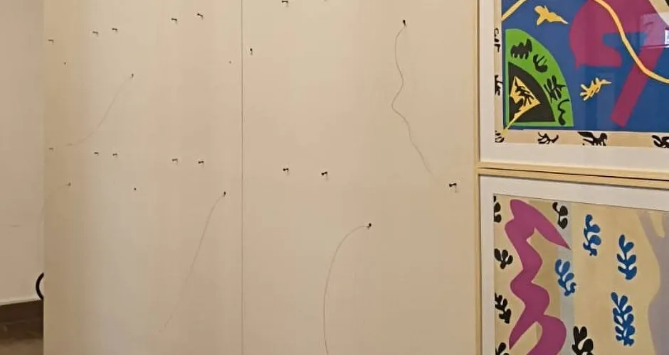Na comparação entre a foto e o vídeo postado pela biblioteca, é possível identificar entre as obras subtraídas colagens do álbum "Jazz", de Matisse, publicado em 1947 na França.