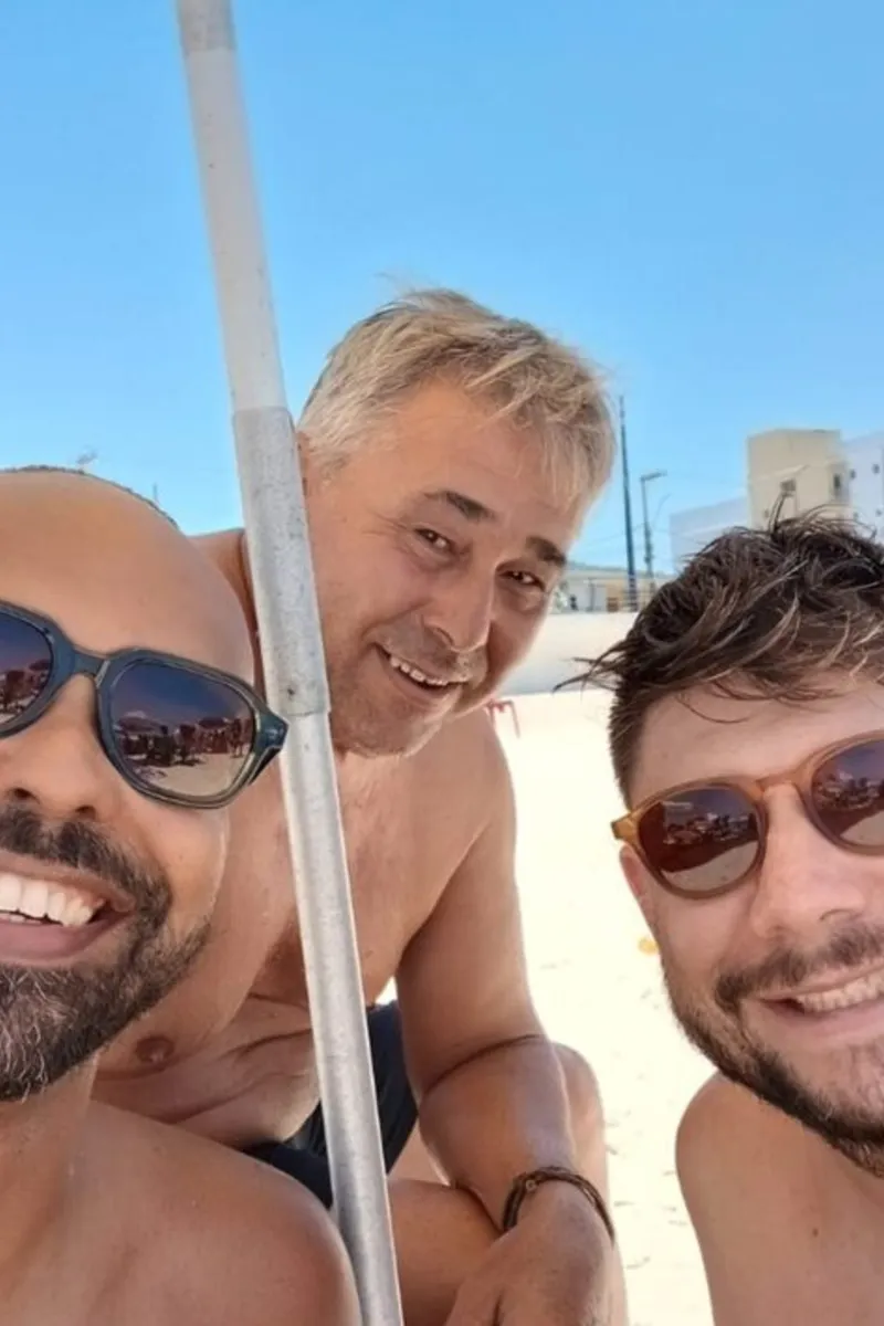 Luiz Pedro Fortes dos Santos no meio entre seu filho, Caue Camargo Santos e o genro poucos dias antes de morrer afogado no mar de Maricá |  Foto: Reprodução/Redes sociais