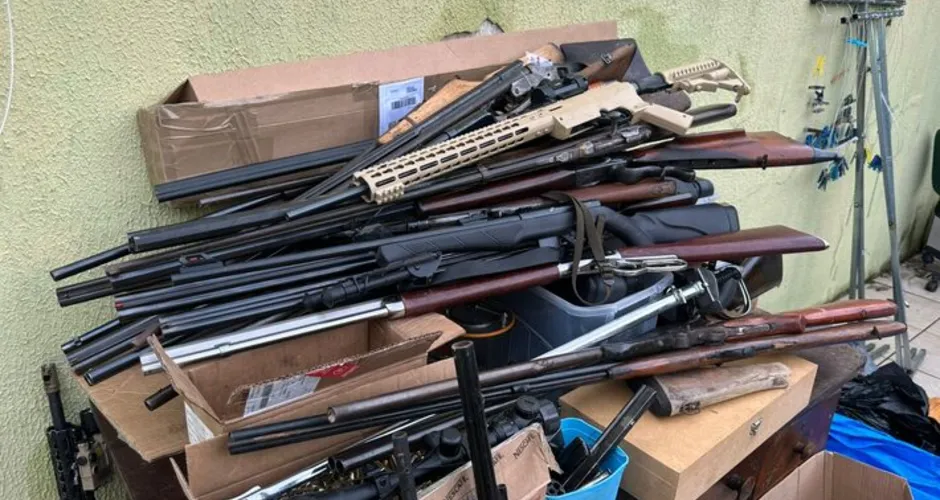 No local, os policiais apreenderam 83 armas de fogo (incluindo pistolas, carabinas, espingardas e revólveres), mais de 3 mil munições intactas de diversos calibres, incluindo restritos, e 12 mil estojos de munição que seriam recarregados no local ou vendidos para outros fabricantes de munições.