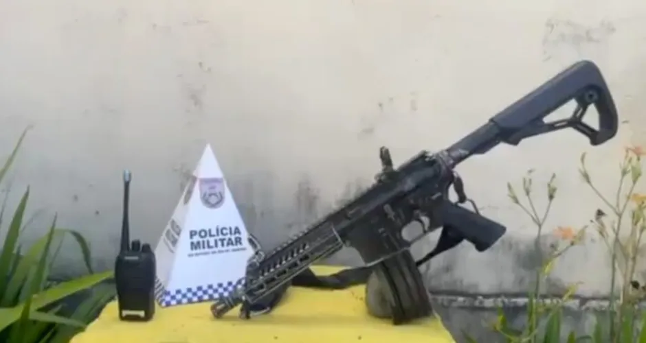 Polícia apreende fuzil em Senador Camará nesta terça-feira, 3. Foto: Reprodução/@pmerj via X