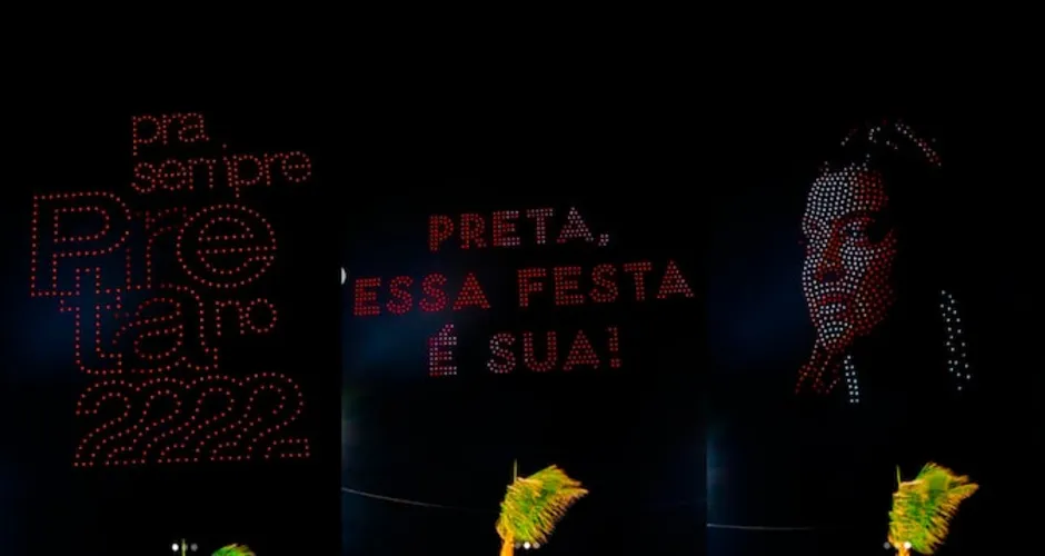 A cantora Preta Gil recebeu uma homenagem no carnaval de Salvador, na Bahia, com uma apresentação de drones no céu do circuito Barra-Ondina. Na projeção, era visto o rosto da artista, que morreu em 2025, assim como mensagens de tributo.