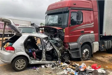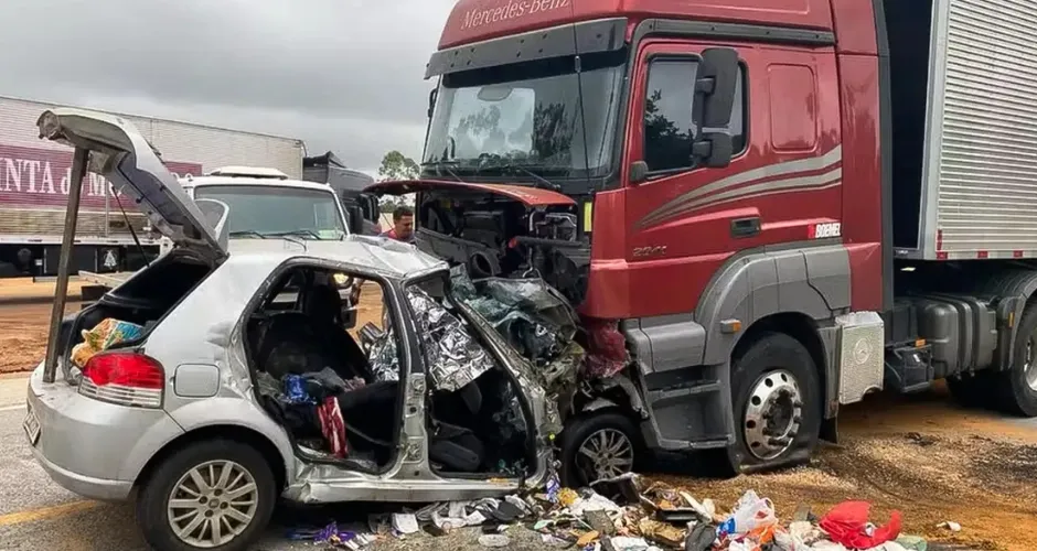 O carro seguia de São Paulo (SP) para Nova Canaã (BA), enquanto a carreta viajava de Lauro de Freitas (BA) para Imbituba (SC), carregada com produtos diversos de uma empresa de vendas on-line. O condutor da carreta, de 36 anos, não sofreu ferimentos.