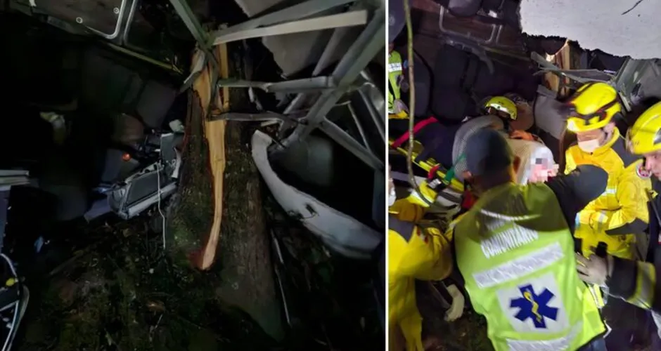 De acordo com o Corpo de Bombeiros, o veículo transportava 25 pessoas, sendo 24 passageiros e o motorista. Após sair da pista, o ônibus caiu em uma ribanceira e colidiu com uma árvore, por volta das 2h19.