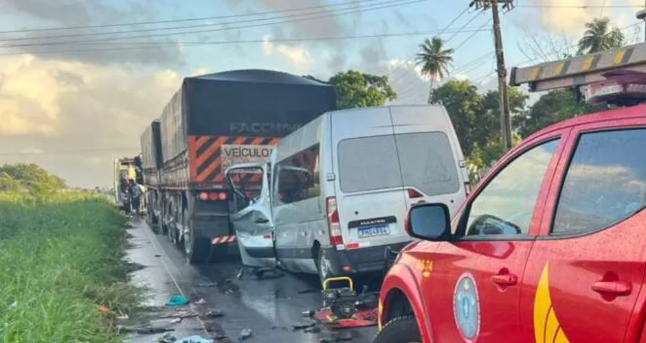 Duas pessoas morreram em um acidente entre uma van e uma carreta na madrugada desta segunda-feira (10) em Pindoretama (CE).