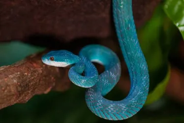 As víboras azuis preferem ficar em topo de árvores, onde se camuflam, e quase nunca descem até o chão. "Fizemos a ambientação de um recinto com galhos de diferentes espessuras, cipós, rochas, abrigos e aquecimento, para ela escolher os locais de sua preferência para repouso, locomoção e alimentação", explica a bióloga.