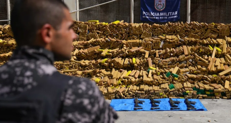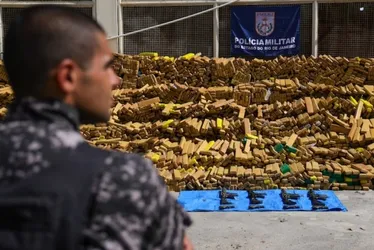 Um bunker com 48 toneladas de maconha foi encontrado com o auxílio de cães farejadores do Batalhão de Ações com Cães (BAC) na comunidade da Nova Holanda, no Complexo da Maré, no Rio de Janeiro, na terça-feira, 7. Outros cinco fuzis, quatro pistolas, e 26 veículos roubados foram recuperados, e um criminoso foi preso, disse a Polícia Militar do Rio de Janeiro.