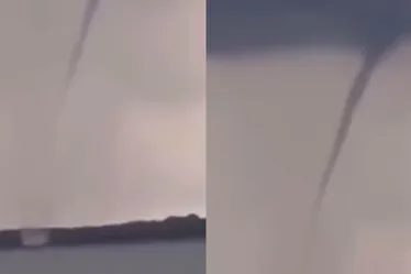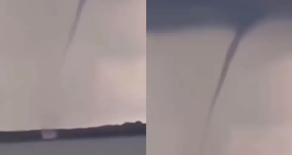 Vídeos gravados por moradores e banhistas mostram uma nuvem escura sobre o oceano. Um funil se forma, com a área mais ampla nas nuvens e a parte mais fina tocando a água (assista acima).