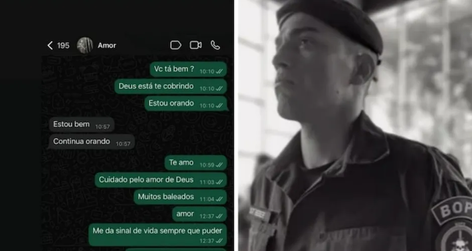 Estas foram as últimas mensagens do policial à esposa. Na sequência, às 10h59, ela retornou com um “Te amo” e, pouco depois, às 11h03, voltou a escrever para o marido: “Cuidado pelo amor de Deus. Muitos baleados.”