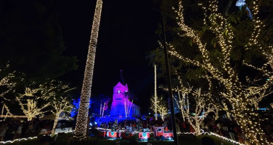 Domingos Martins, nas montanhas capixabas, já está iluminada pelas luzes natalinas. A 27ª edição do Brilho de Natal começou na última sexta-feira (24) e vai até o dia 7 de janeiro do ano que vem. A estimativa da prefeitura é que, durante o período, o evento possa atrair 100 mil turistas para a cidade.