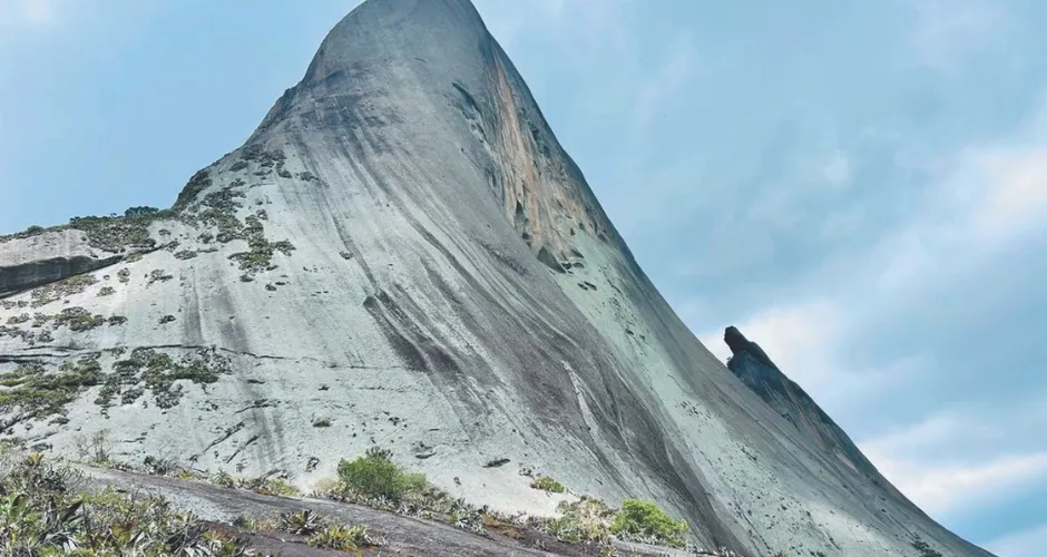No topo dela, são 1.822 metros de altitude. Não é à toa que quem passa pela rodovia BR-262 tem o olhar captado pela imponência e pela beleza da Pedra Azul, cuja coloração azulada se deve à presença de líquens na rocha. Dependendo da época do ano e da incidência solar, ela também pode parecer laranja e até rosa.
