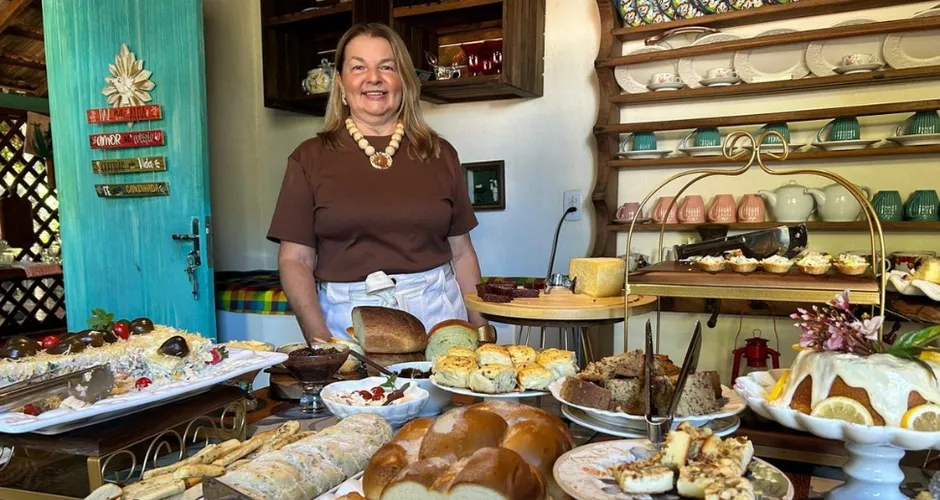 O café colonial funciona aos sábados e domingos, com agendamento, de manhã e à tarde. Também atende grupos, abre para eventos e oferece hospedagem.