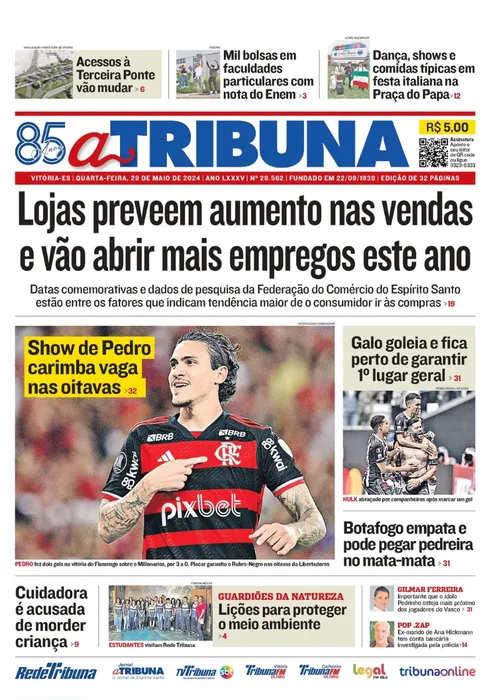 A edição do jornal A Tribuna desta quarta-feira, dia 29 de maio, traz em destaque que lojas preveem aumento nas vendas e vão abrir mais empregos este ano.