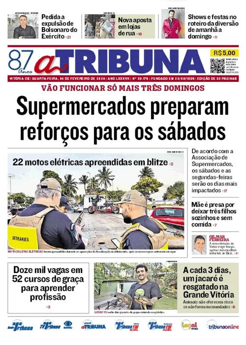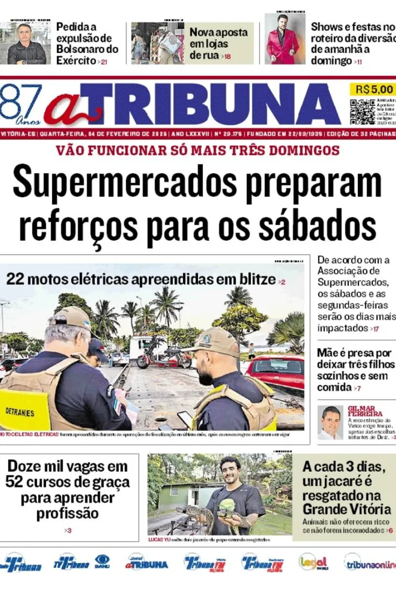 A edição do jornal A Tribuna desta quarta-feira, 04 de fevereiro, traz em destaque que supermercados preparam reforços para os sábados.