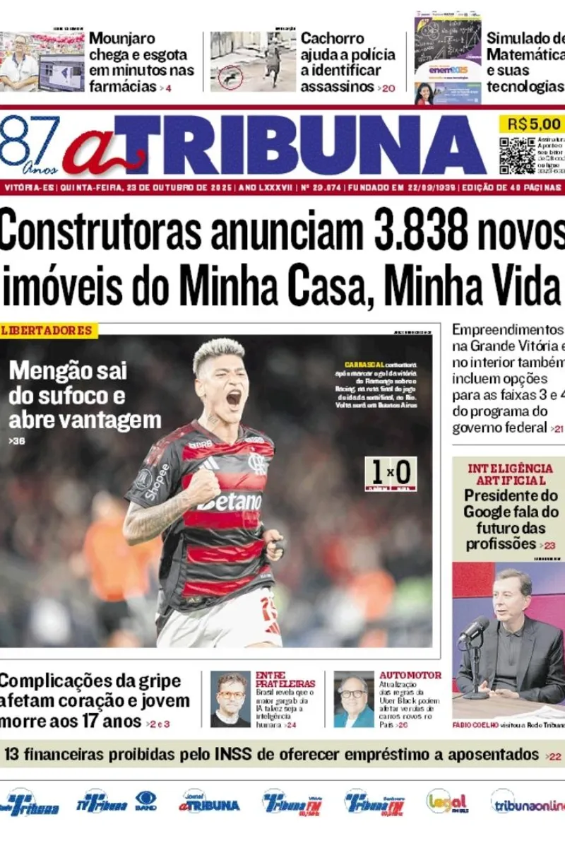 Imagem ilustrativa da imagem Confira os destaques do jornal A Tribuna desta quinta-feira