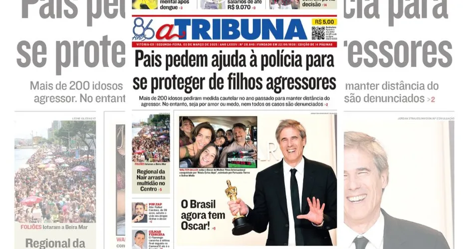 A edição do jornal A Tribuna desta segunda-feira, dia 03 de março, traz em destaque que pais pedem ajuda à polícia para se proteger de filhos agressores.
