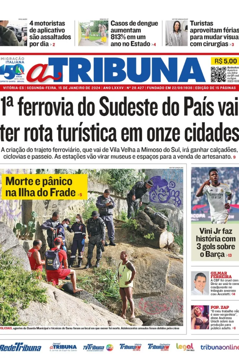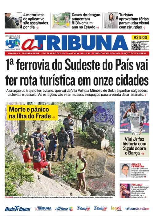 A edição do jornal A Tribuna desta segunda-feira, dia 15 de janeiro, traz em destaque 1ª ferrovia do Sudeste do País vai ter rota turística em onze cidades.