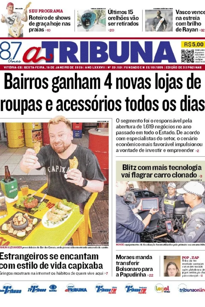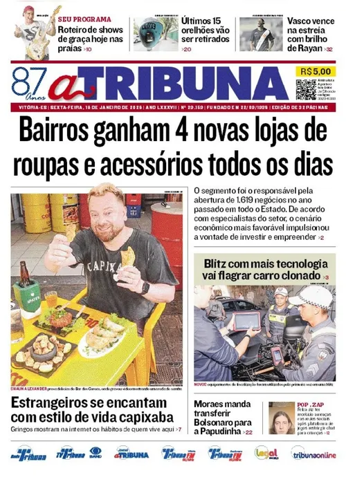 A edição do jornal A Tribuna desta sexta-feira, 16 de janeiro, traz em destaque que bairros ganham 4 novas lojas de roupas e acessórios todos os dias.