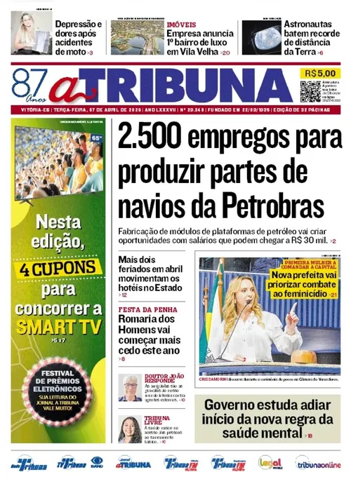 Confira os destaques do jornal A Tribuna desta terça-feira