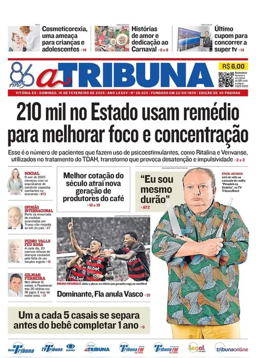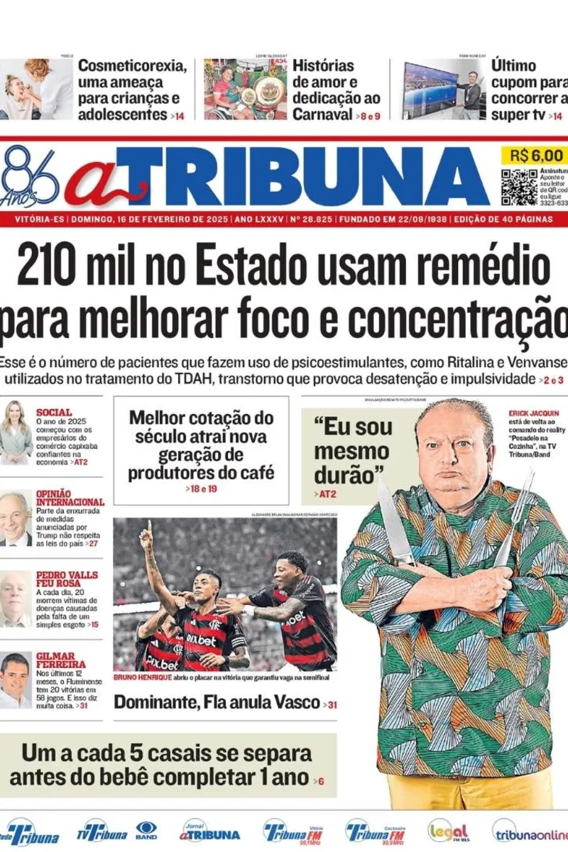 A edição do jornal A Tribuna deste domingo, dia 16 de fevereiro, traz em destaque que 210 mil no Estado usam remédio para melhorar foco e concentração.