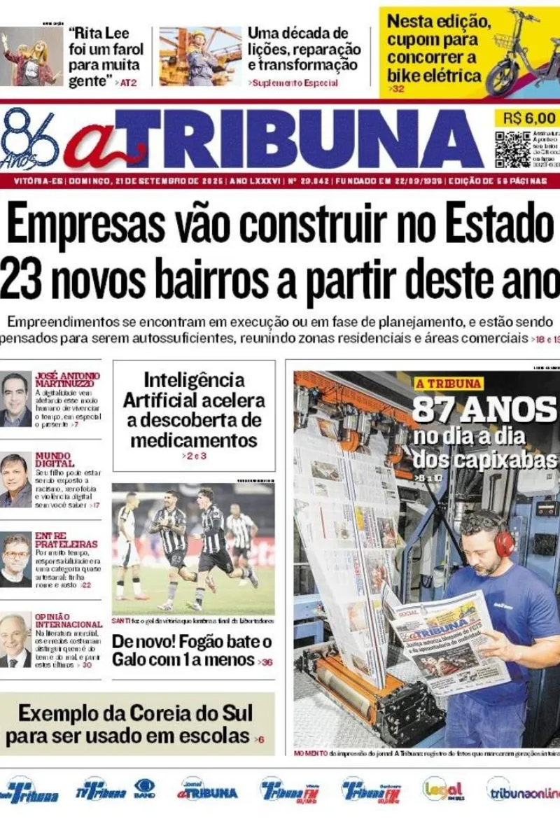 A edição do jornal A Tribuna deste domingo, 21, traz em destaque que empresas vão construir no Estado 23 novos bairros a partir deste ano.