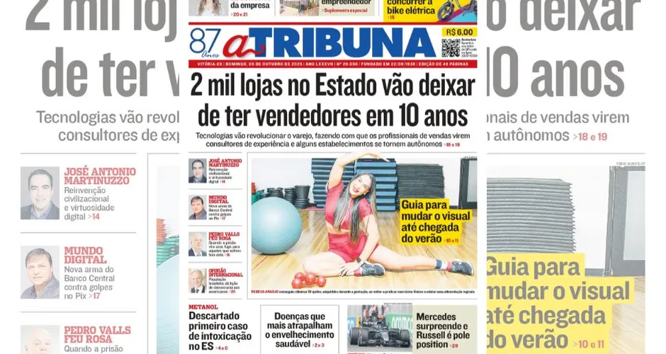 A edição do jornal A Tribuna deste domingo, dia 05 de outubro, traz em destaque que duas mil lojas no Estado vão deixar de ter vendedores em 10 anos.