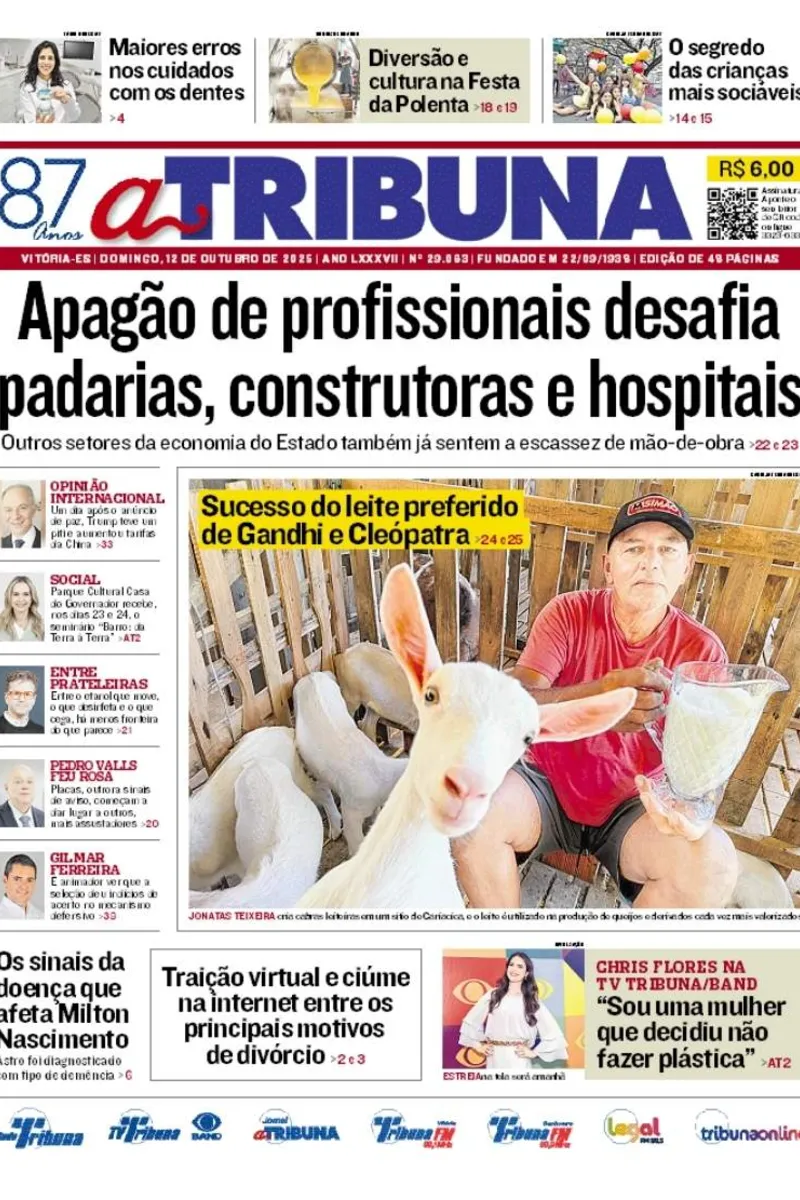 A edição do jornal A Tribuna deste domingo, 12 de outubro, traz em destaque que apagão de profissionais desafia padarias, construtoras e hospitais.