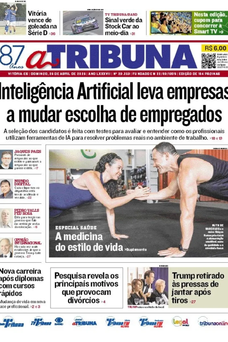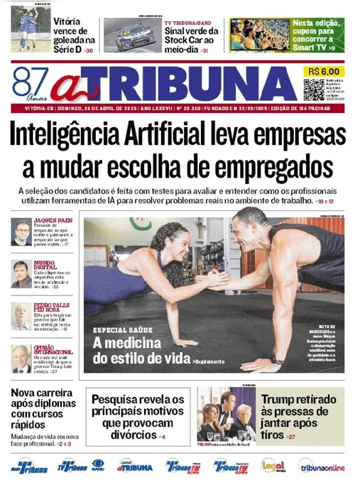A edição do jornal A Tribuna deste domingo, 26 de abril, traz em destaque que Inteligência Artificial leva empresas a mudar escolha de empregados.