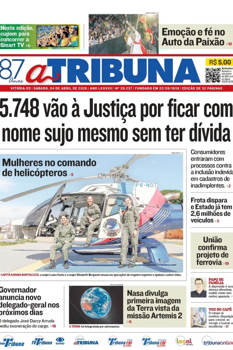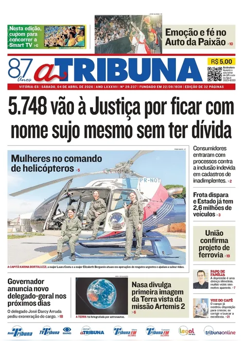 A edição do jornal A Tribuna deste sábado, 4 de abril, traz em destaque que 5.748 vão à Justiça por ficar com nome sujo mesmo sem ter dívida.