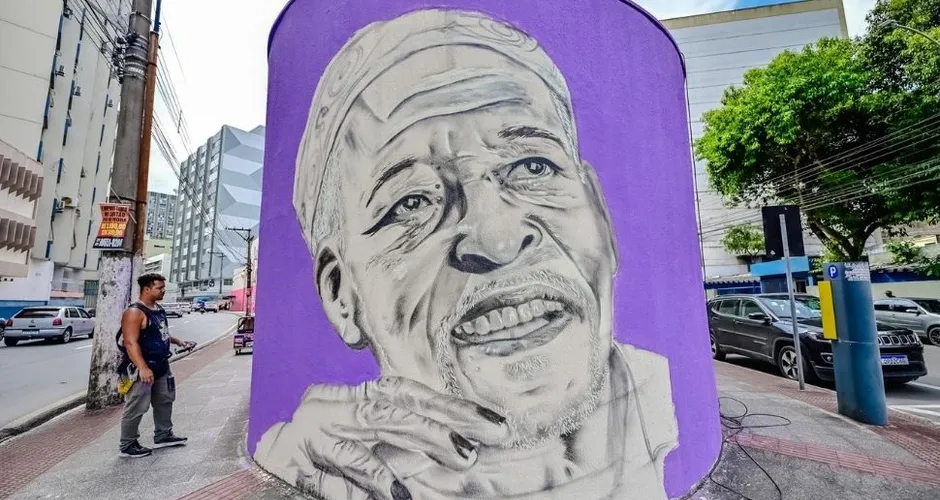 Kleber Simpatia é retratado em muro da Fames, no Centro de Vitória |  Foto: Leonardo Silveira/PMV