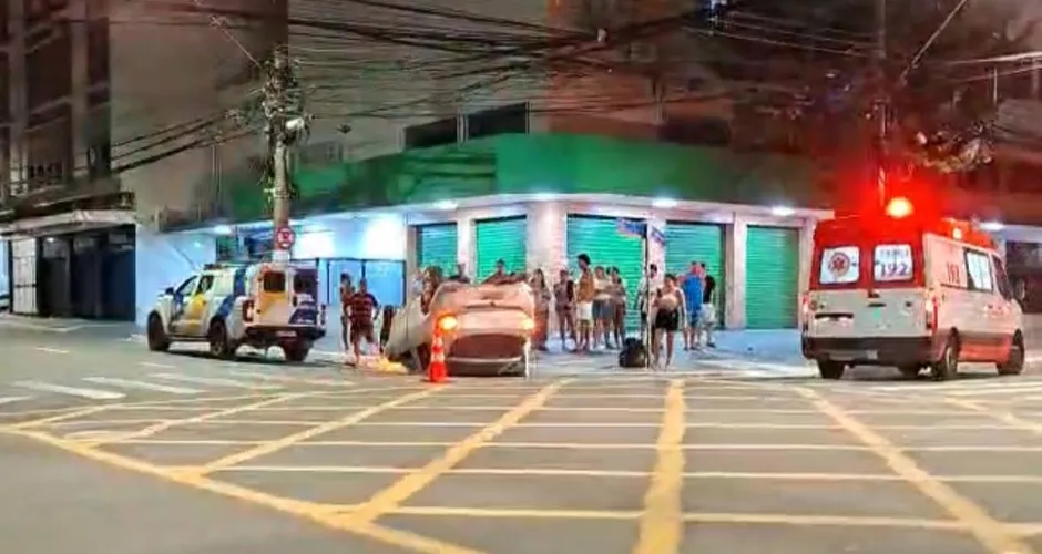 Acidente deixa três feridos e um carro capotado no Centro de Vitória