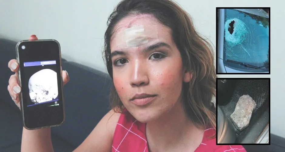 A advogada Michaella Zukowski, com 25 anos na época, foi atingida por uma pedrada enquanto ia para o aeroporto Eurico de Aguiar Salles, em Goiabeiras, Vitória, dentro do carro com familiares.