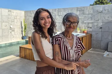 Na hora do procedimento, Dona Lilia estava acompanhada da neta, a professora de educação infantil e ensino fundamental Camily Frassi, de 23 anos, que deu todo apoio e motivação à avó. As duas saíram de Guarapari com destino à Mata da Praia, em Vitória, para fazer a tatuagem.