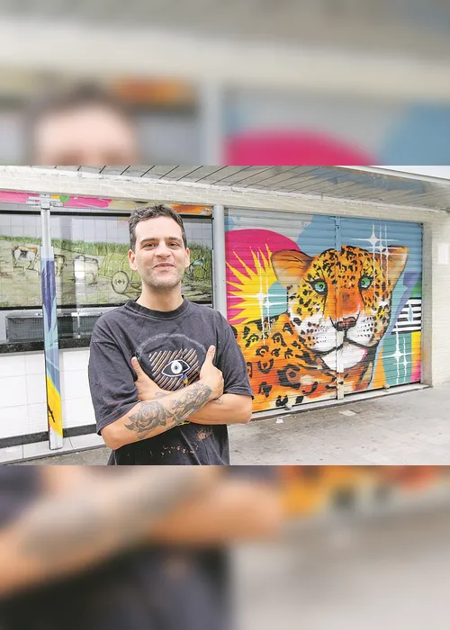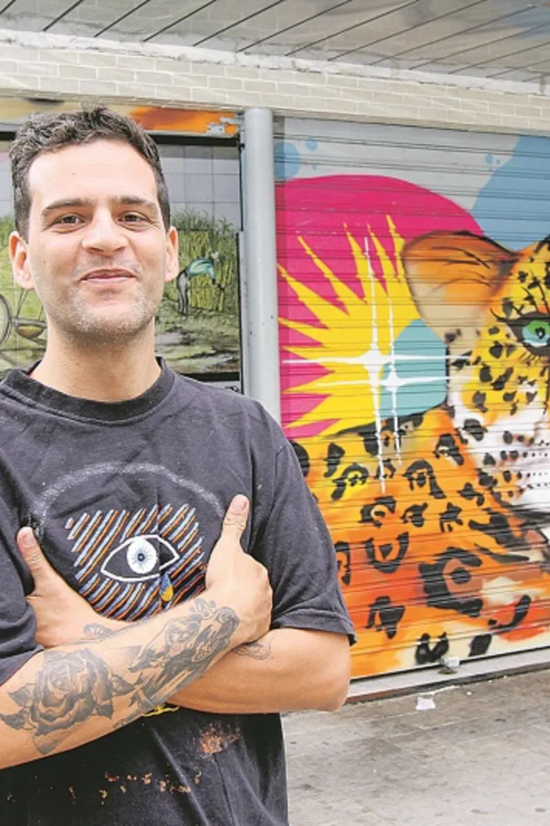O artista Paulo Postiço ficou responsável pela arte em 20 portas na 1ª etapa da intervenção na Jerônimo Monteiro |  Foto: Beto Morais/AT