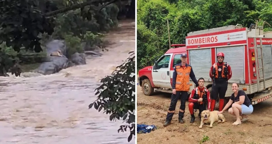 A equipe do 4º Batalhão Bombeiro Militar, em Venda Nova do Imigrante, foi acionada na quarta-feira (21) pela moradora da zona rural de Conceição do Castelo, na região Serrana do Estado. Ela relatou que a cachorra de estimação da família estava ilhada em uma pedra, depois de cair na correnteza do rio.