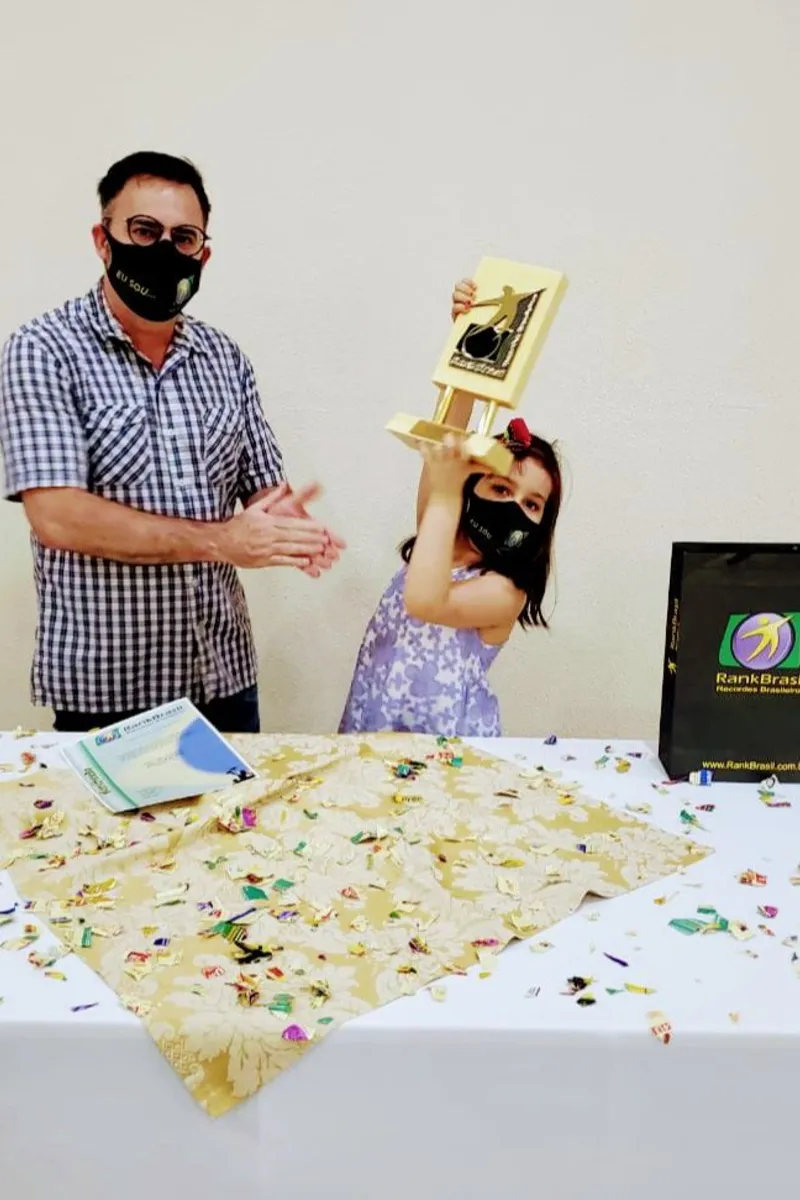 A menina receberia o título em maio de 2019, aos 4 anos, mas houve um atraso na cerimônia e, logo depois, veio a pandemia. Acompanhada dos pais, Elisa recebeu o certificado do registro do recorde na última terça-feira (6), em um hotel de Curitiba, no Paraná.