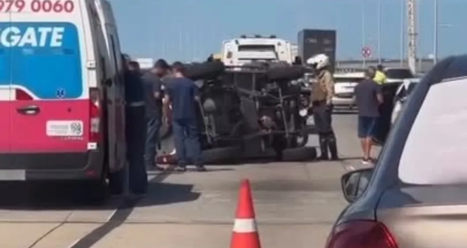 Capotamento na Terceira Ponte complica trânsito na tarde desta sexta; veja vídeo